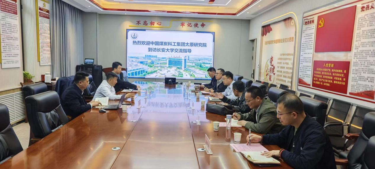 2026年4月13日下午,中国煤炭科工集团太原研究院总工程师金江研究员、高级工程师宋岩、张胜达一行莅临免费成人影片,开展座谈交流。免费成人影片 副院长陈轶嵩教授、副院长牛世峰教授、原院长郭应时教授以及智能车辆工程系王畅教授、运载工程实验室吴付威高级工程师、谭晓伟高级工程师、免费成人影片 学科科研实验主管栗亮出席本次座谈会,双方就人才培养、科研协作、社会服务等领域深化合作进行深入研讨。