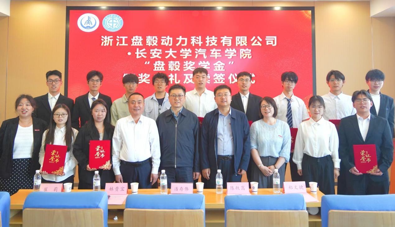 浙江盘毂动力科技有限公司总经理潘存伟代表企业与免费成人影片 续签“盘毂奖学金”并为获奖学生颁奖,激励免费成人影片 青年学子勤奋学习、追求卓越,为培养高素质汽车人才注入了强劲动力。